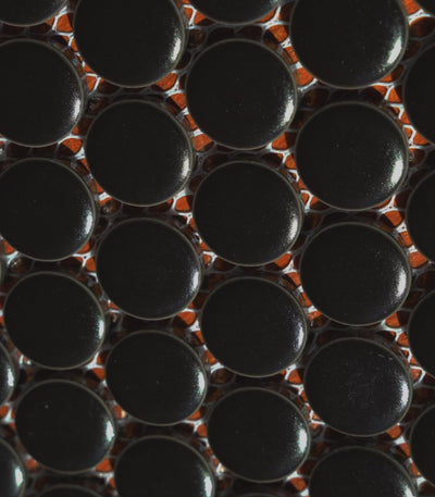 Mozaika Penny Dots Czarna Matte to eleganckie ceramiczne „penny dots” w głębokiej czerni z matowym wykończeniem, które harmonijnie łączy klasykę z nowoczesnością. Każda kostka jest starannie dopasowana, dzięki czemu finalna powierzchnia prezentuje się minimalistycznie i stylowo. Doskonale sprawdzi się w łazienkach, kuchniach oraz pokojach dziennych, wprowadzając do wnętrza silny, wyrazisty akcent. Idealna do przestrzeni w stylu loft, industrialnych oraz monochromatycznych aranżacji.
